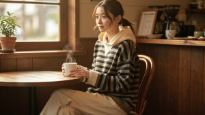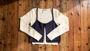 表面は単色で、裏面は裾がレイヤードになる仕様でバイカラーでご着用いただけます。