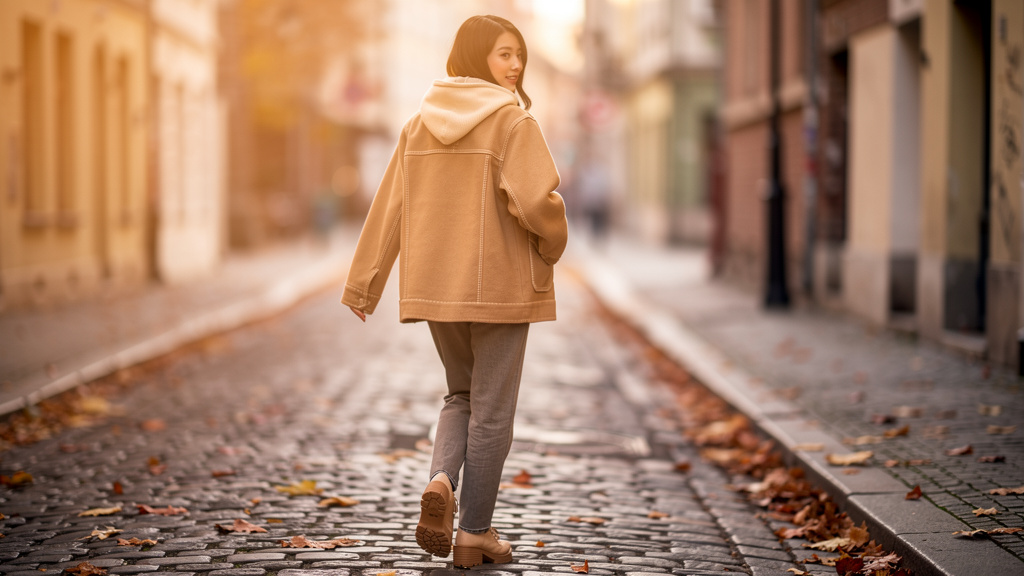 Softshell Hooded Down Jacket-ソフトシェル フードダウンジャケット- 静かな存在感を放つ、ショート丈のフーデッドダウンジャケット。やわらかなベージュトーンとマットな表情が、街並みに自然と溶け込み、装いに上品な奥行きを与えます。首元まで包み込... -